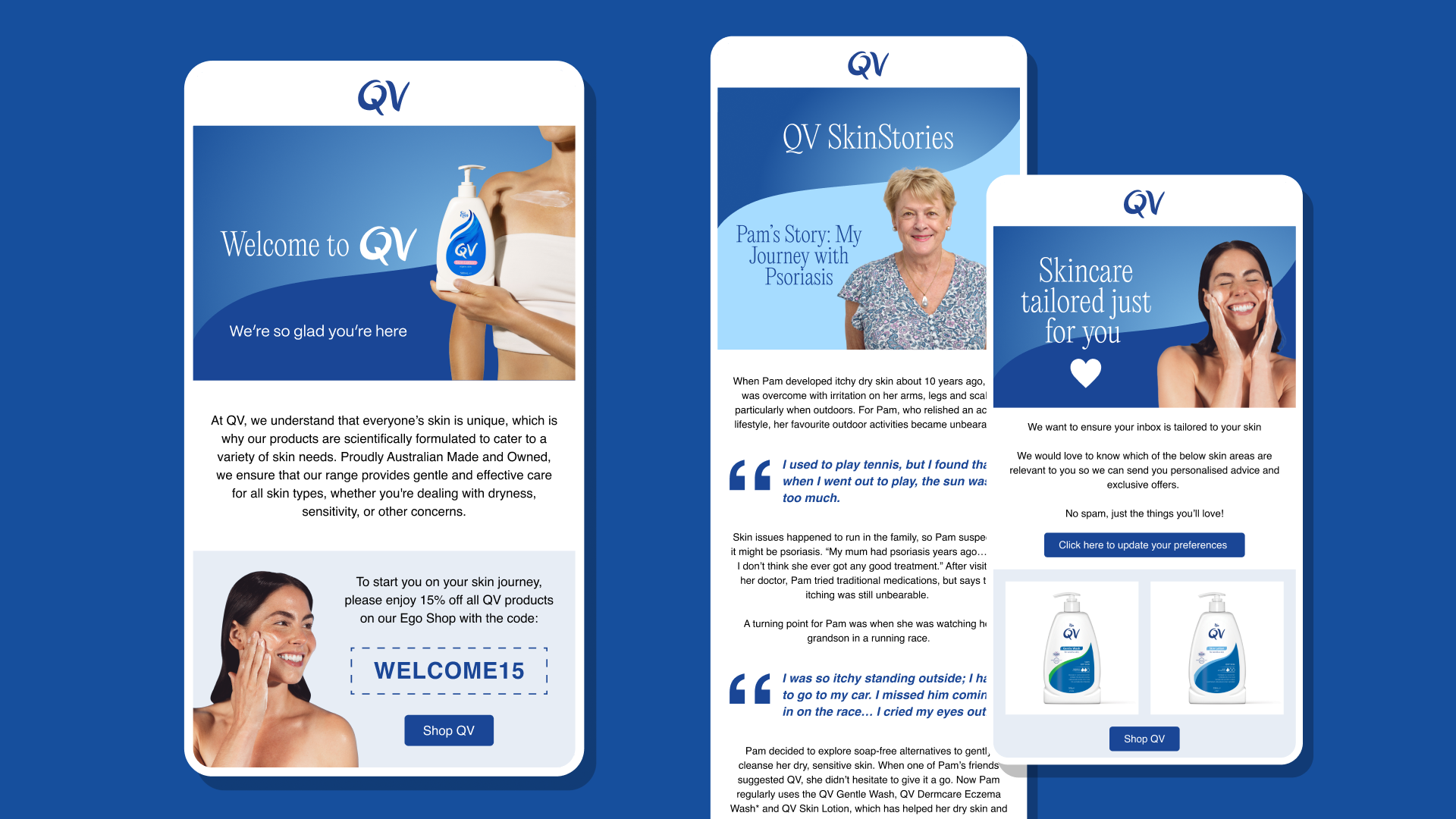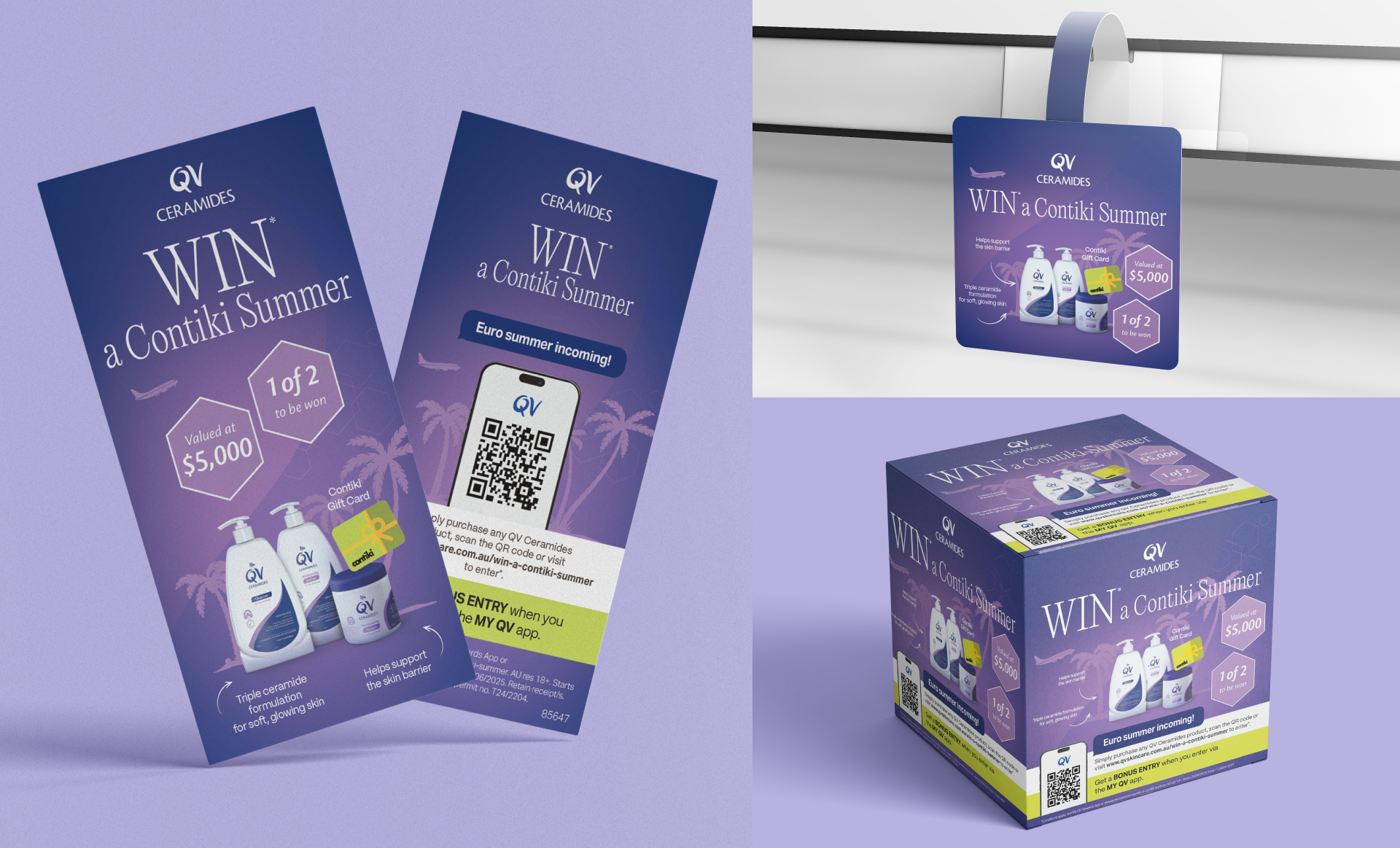 For selected QV promotional campaigns, I designed the key visuals from scratch, creating artwork that balanced QV’s clinical credibility with more expressive, campaign-driven storytelling. These visuals were then adapted across retail and promotional touchpoints.